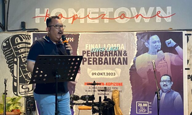 MAKASSAR,DJOURNALIST.com – Partai Demokrat Provinsi Sulawesi Selatan (Sulsel) menggelar lomba cover lagu berjudul Perubahan dan Perbaikan, di Warkop Hometown KopiZone, Jalan Topaz Kota Makassar, Selasa malam 9 Oktober 2023