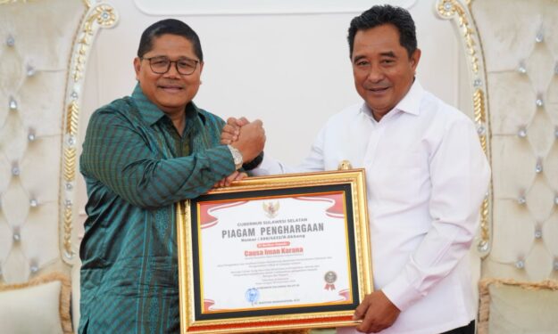 Pj Gubernur Bahtiar menyampaikan apresiasinya kepada Causa Iman Karana yang sudah bekerja keras sebagai koordinator TPID Sulsel.