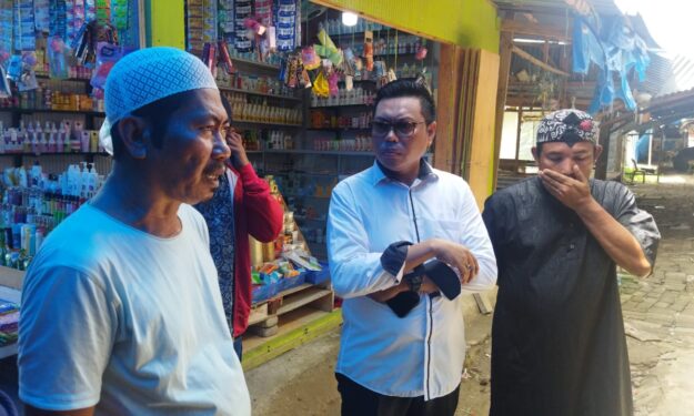 Pembina Asosiasi Pedagang Pasar Karisa Jeneponto, H Amir, saat berbincang dengan Calon Anggota Legislatif DPR RI, Mukhtar Tompo menjelaskan, sejumlah alasan mengaps pasar jadi sepi.