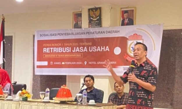 MAKASSAR, DJOURNALIST.com – Anggota DPRD Kota Makassar, Kasrudi menggelar Sosialisasi Peraturan Daerah (Perda) Nomor 1 Tahun 2022 tentang Perubahan atas Perda Nomor 13 Tahun 2011 tentang Retribusi Jasa Usaha, di Hotel Grand Imawan, Jl Pengayoman, Kamis (8/2/2024).