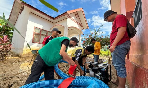 Selain itu, tim LAZ Hadji Kalla juga membawa mesin pompa air yang digunakan untuk membersihkan fasilitas umum, seperti masjid dan sekolah-sekolah yang masih terendam lumpur tebal pasca banjir. Upaya ini bertujuan untuk memastikan bahwa proses pembelajaran di sekolah-sekolah tersebut dapat segera dilanjutkan dengan aman dan nyaman bagi para siswa.