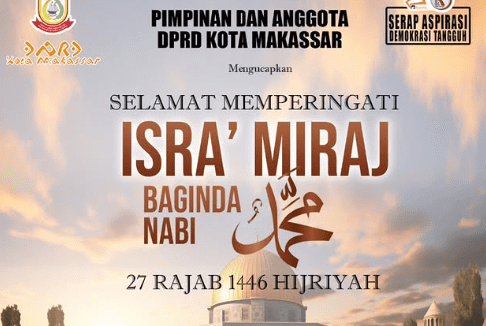 MAKASSAR, DJOURNALIST.com – – Pimpinan dan anggota DPRD Kota Makassar mengucapkan selamat memperingati peristiwa Isra Mi’raj kepada seluruh umat Muslim di kota ini. Dalam sambutannya, mereka mengingatkan bahwa momen Isra Mi’raj merupakan pengingat bagi umat Islam untuk selalu bersyukur atas nikmat yang diberikan oleh Allah SWT.