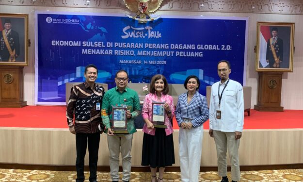 “Saya kira pertama, kalau kami melihatnya bahwa potensi hilirisasi, industrialisasi yang berpeluang untuk kita dorong, karena kan kita mau target 8 persen di 2029. Apalagi saat ini pertumbuhan ekonomi kita mencapai 5,78 persen,” terangnya, usai menghadiri Sulsel Talk bertajuk “Ekonomi Sulsel di Pusaran Perang Dagang Global 2.0: Menakar Risiko, Menjemput Peluang”, di Baruga Pinisi, Kantor BI Sulsel, Rabu, (14/05/2025).
