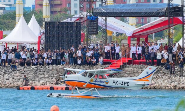 MAKASSAR, DJOURNALIST.com – Pemerintah Provinsi Sulawesi Selatan meluncurkan uji coba terbang pesawat amfibi (seaplane) sekaligus menandai peletakan prasasti groundbreaking pembangunan water aerodrome di Taman Andalan, kawasan Center Point of Indonesia (CPI) Makassar, Senin, 11 Agustus 2025.
