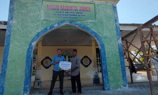 GOWA – PT Pegadaian melalui program Tanggung Jawab Sosial dan Lingkungan (TJSL) menyalurkan bantuan untuk renovasi Masjid Raudhatul Jannah yang berada di Kecamatan Bontonompo Selatan, Kabupaten Gowa.