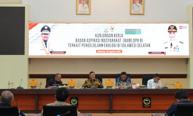 MAKASSAR, DJOURNALIST.com – Badan Aspirasi Masyarakat (BAM) DPR RI melakukan kunjungan kerja untuk mendengarkan aspirasi masyarakat mengenai pengelolaan ekologi di Sulawesi Selatan. Pertemuan berlangsung di Ruang Rapat Pimpinan Kantor Gubernur Sulsel, Kamis, 28 Agustus 2025.