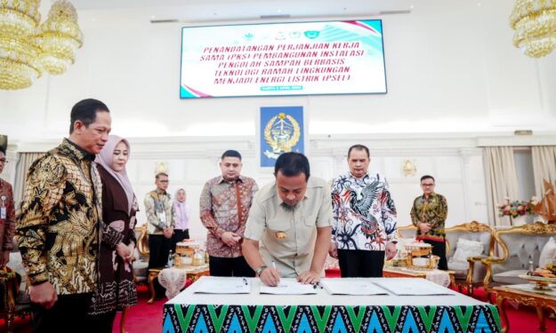 MAKASSAR, DJOURNALIST.com – Gubernur Sulawesi Selatan, Andi Sudirman Sulaiman bersama Wali Kota Makassar, Munafri Arifuddin, Bupati Gowa Sitti Husniah Talenrang, serta Wakil Bupati Maros Andi Muetazim Mansyur menandatangani Perjanjian Kerja Sama (PKS) pembangunan Pengolahan Sampah menjadi Energi Listrik (PSEL) senila Rp3 Triliun yang akan dibangun di wilayah Tamangapa, Kecamatan Manggala, Kota Makassar.